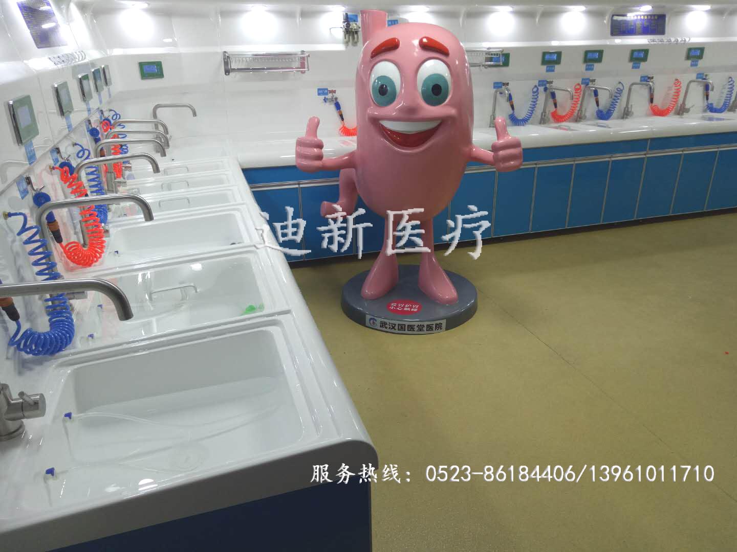熱烈祝賀武漢世紀國醫(yī)堂醫(yī)院胃腸鏡清洗裝置安裝調(diào)試完畢! 泰州迪新的內(nèi)鏡清洗裝置清洗槽和背板均采用PMMA高分子材料一次槽沖壓成型,表面平滑,無縫角耐酸堿。采用微電腦控制系統(tǒng),配備五槽清洗槽、高壓水槍、可選智能控制系統(tǒng)、水處理系統(tǒng)、氣體處理系統(tǒng)、滅菌液處理系統(tǒng)、干燥功能、節(jié)液(酶)系統(tǒng)、測漏系統(tǒng)、給排水系統(tǒng)、照明系統(tǒng)及其他輔助設(shè)備,本產(chǎn)品主要針對醫(yī)院內(nèi)鏡中心或各科室的軟式內(nèi)鏡和硬式內(nèi)鏡的清洗滅菌,常用內(nèi)鏡包括:腸鏡、胃鏡、十二指腸鏡、支氣管鏡、宮腔鏡、膽道鏡、腹腔鏡等各類內(nèi)窺鏡的清洗滅菌。 歡迎廣大新老客戶來電咨詢,本公司服務(wù)熱線:0523-86184406/13961011710